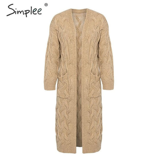 Simplee Winter mohair long cardigan knitted sweater women Long sleeve female jumper cardigan Casual streetwear pull femme 2019