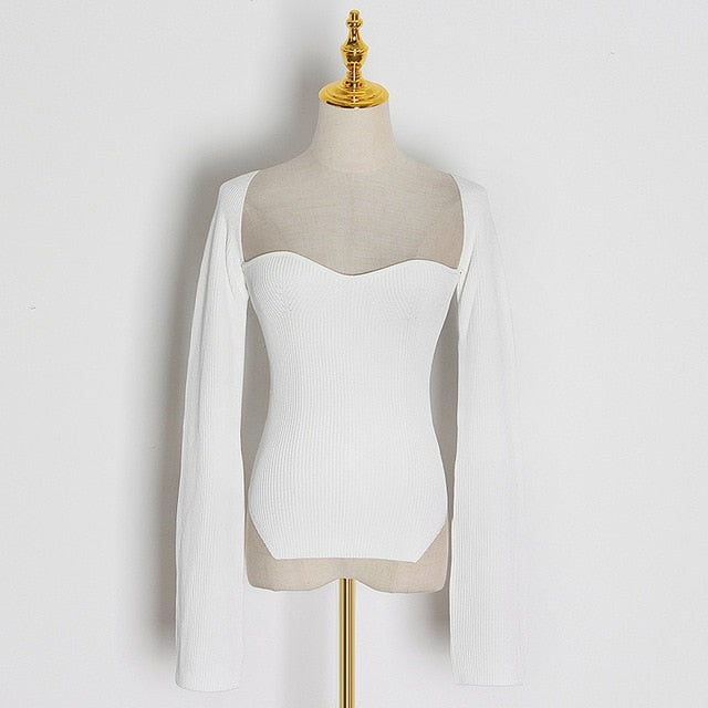 TWOTWINSTYLE Elegant Side Split Knitted Women's Sweater Square Collar Long Sleeve Sexy Sweaters Female Fashion New 2020 Clothing